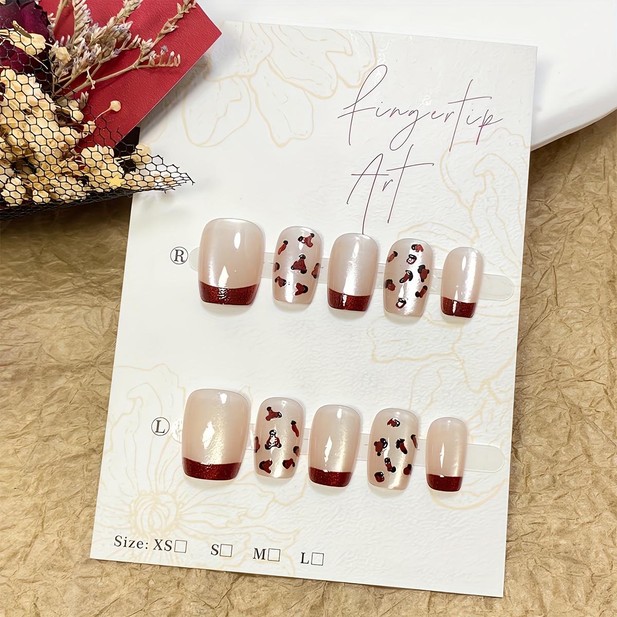 10pcs Handmade Removable Short Ballet Nail Set - Pink Cat Eye Red French Leopard Gradient Glitter, Full Coverage Finger Nails for Parties, Balls, Everyday Wear, Nail Accessories, Ball Nails, Festive Nail Art, Glossy Finish