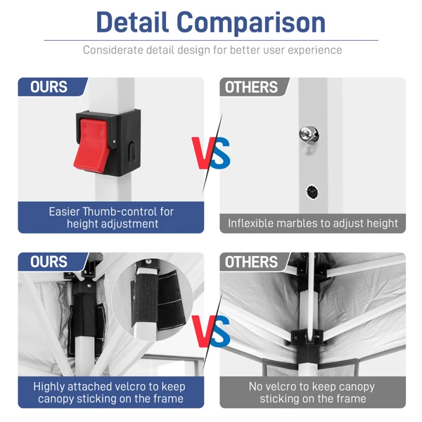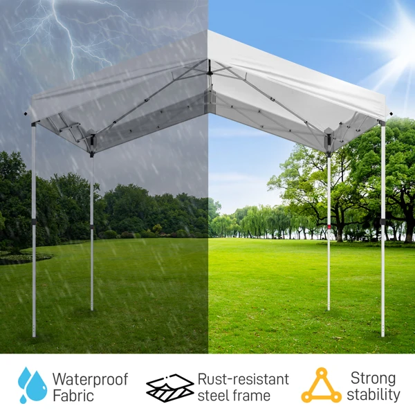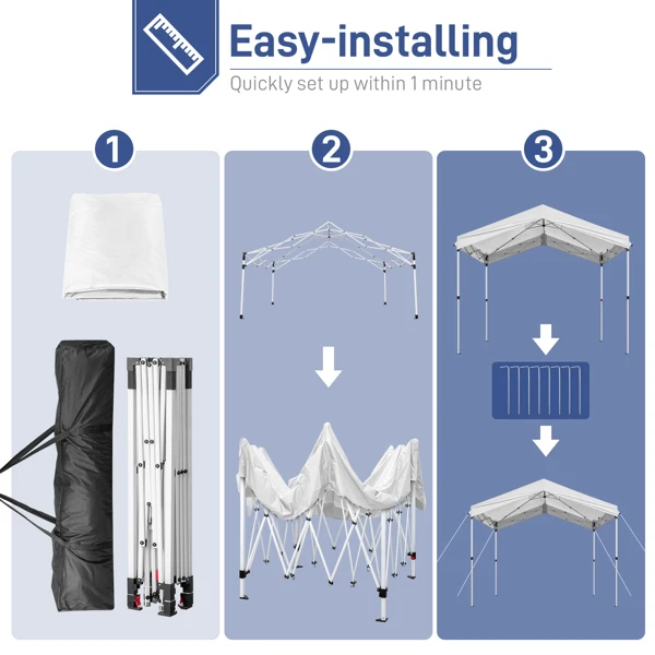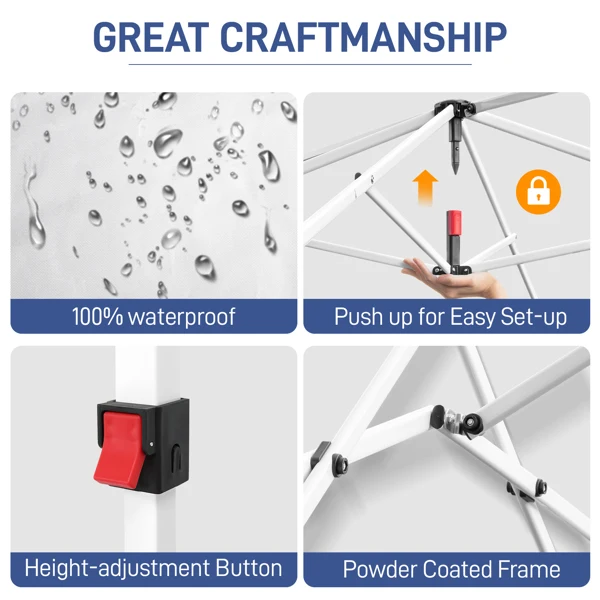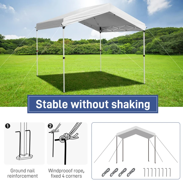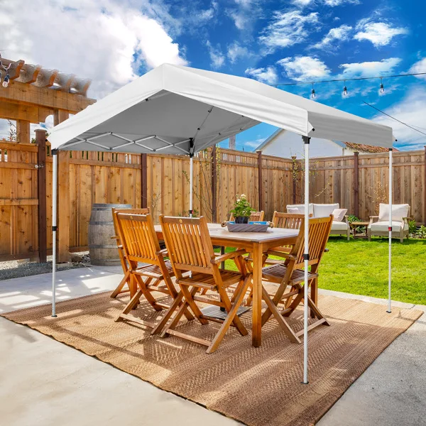 Your family will have a wonderful time with this Outdoor canopy. With a durable, hard canopy and thick, sturdy posts, this canopy is truly the ultimate in practicality and convenience. It comes with a carrying bag so that you can easily bring the convenient gazebo anywhere as a quick, sun-coverage solution. The canopy top also wear PA coating, which is UV-resistant and waterproof. The durable powder-coated steel frame features pre-drilled holes so you can anchor it if desired. Set it up on your lawn or on your patio, or take it during camping, and get ready to enjoy delightful outdoor life!