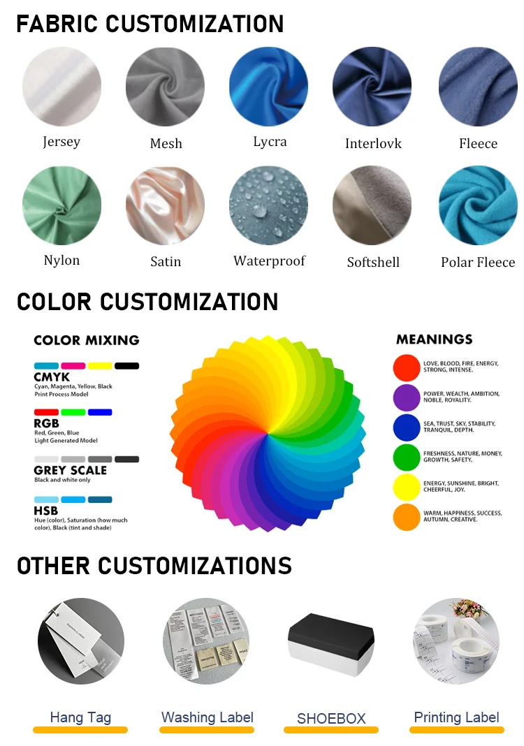 Offset print, emboss print, rubber piece, hot seal, embroidery, high frequency