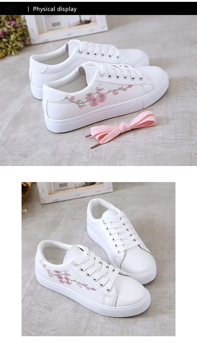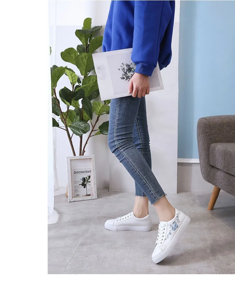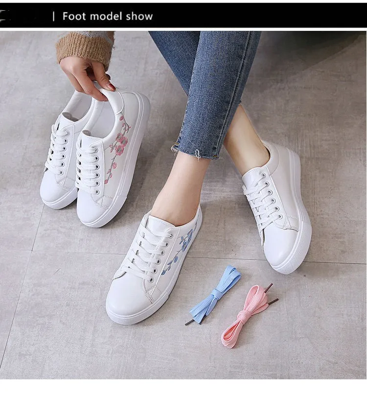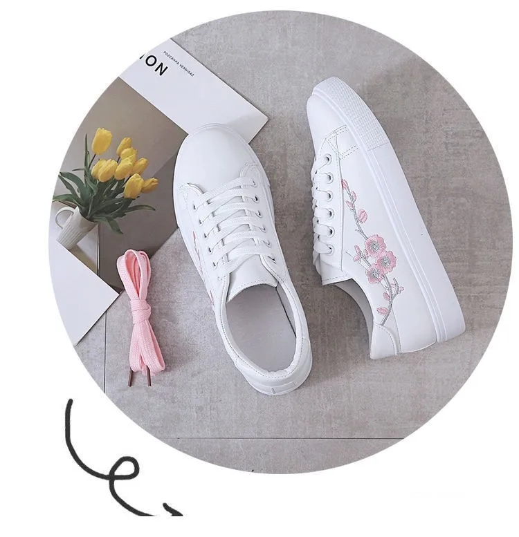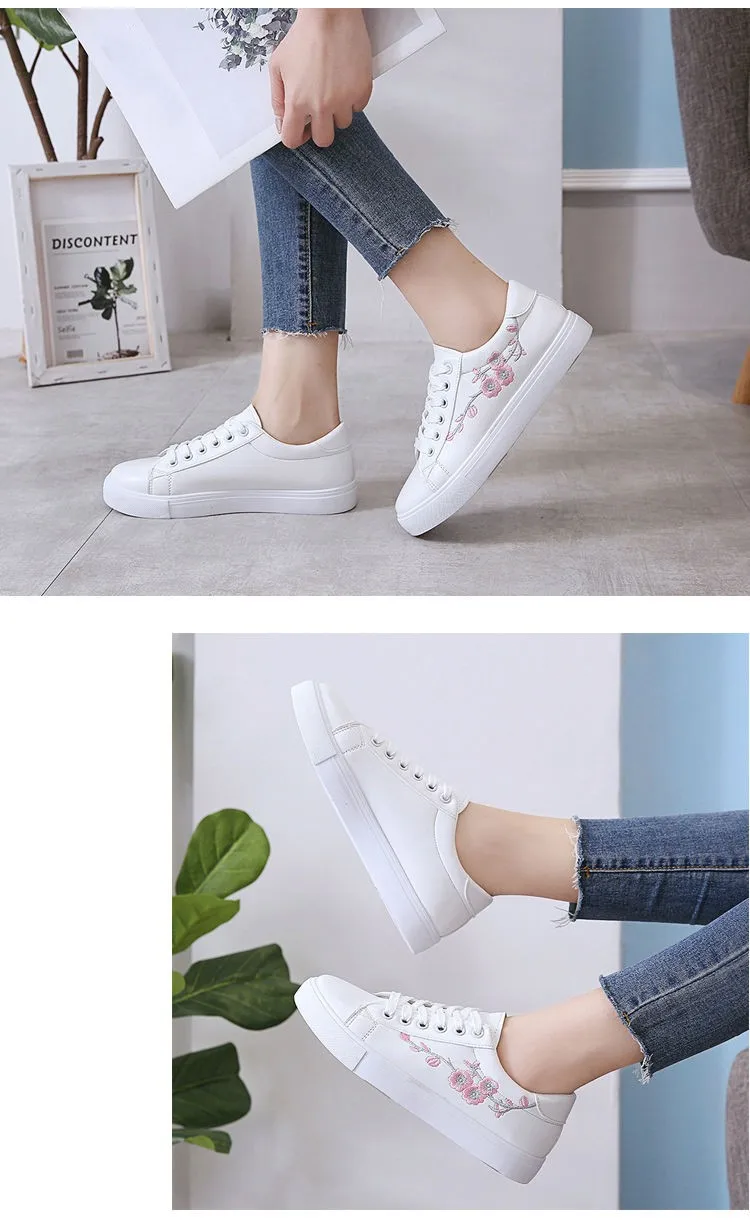 Embroidered Ladies White Shoes Casual Sports Shoes New Low-top Women's Shoes