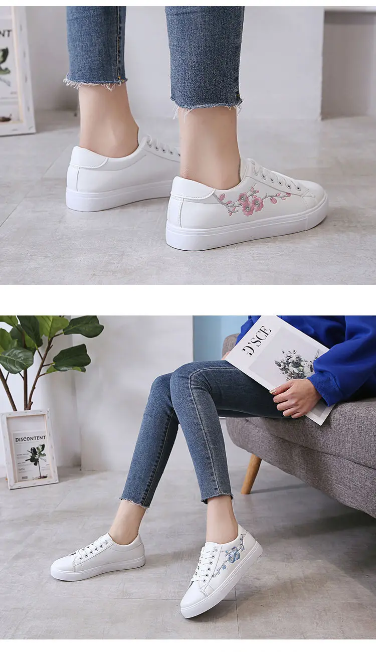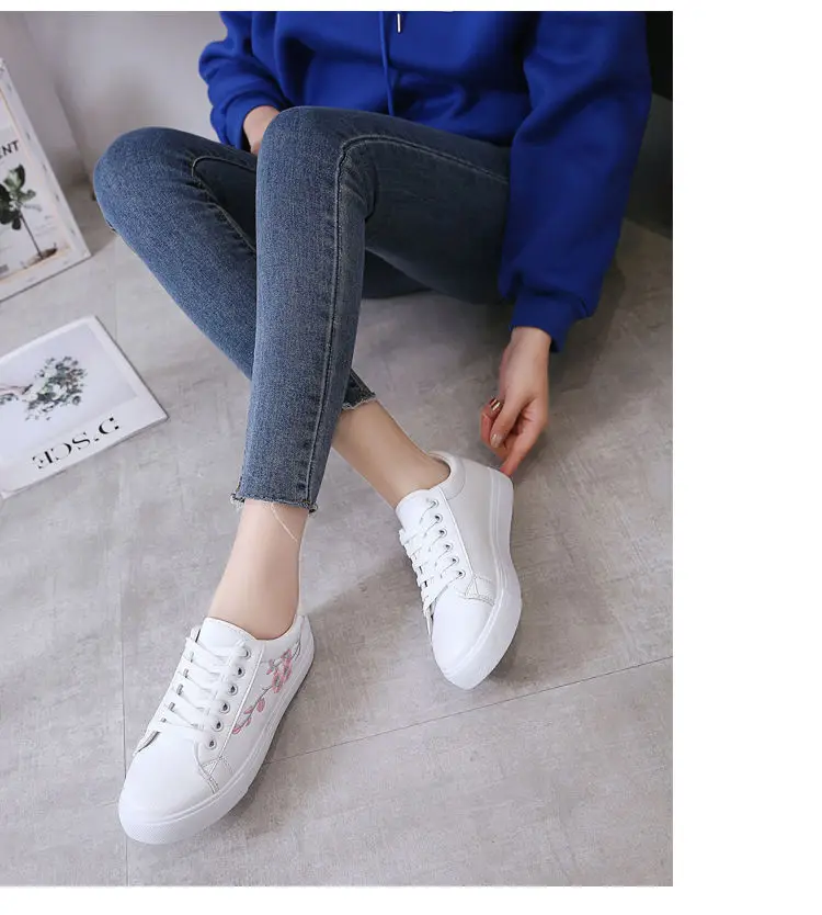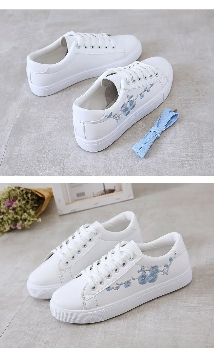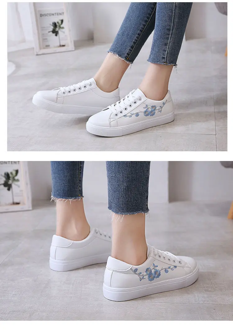 Embroidered Ladies White Shoes Casual Sports Shoes New Low-top Women's Shoes