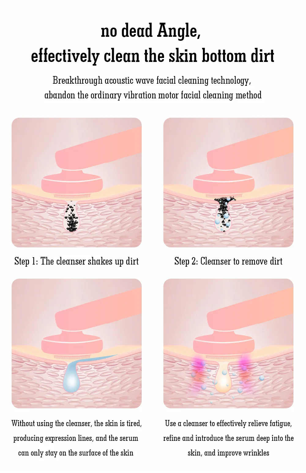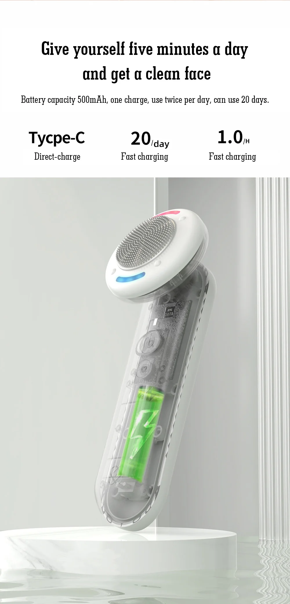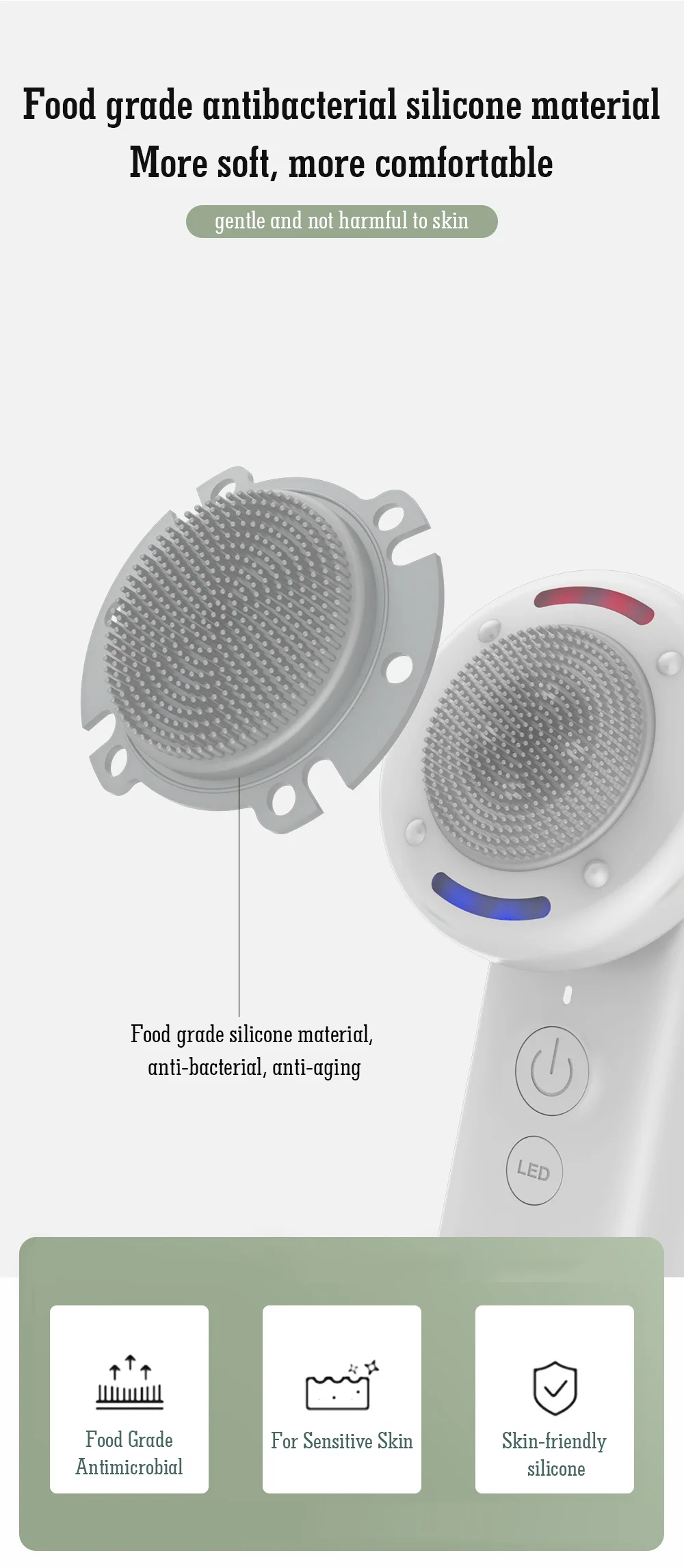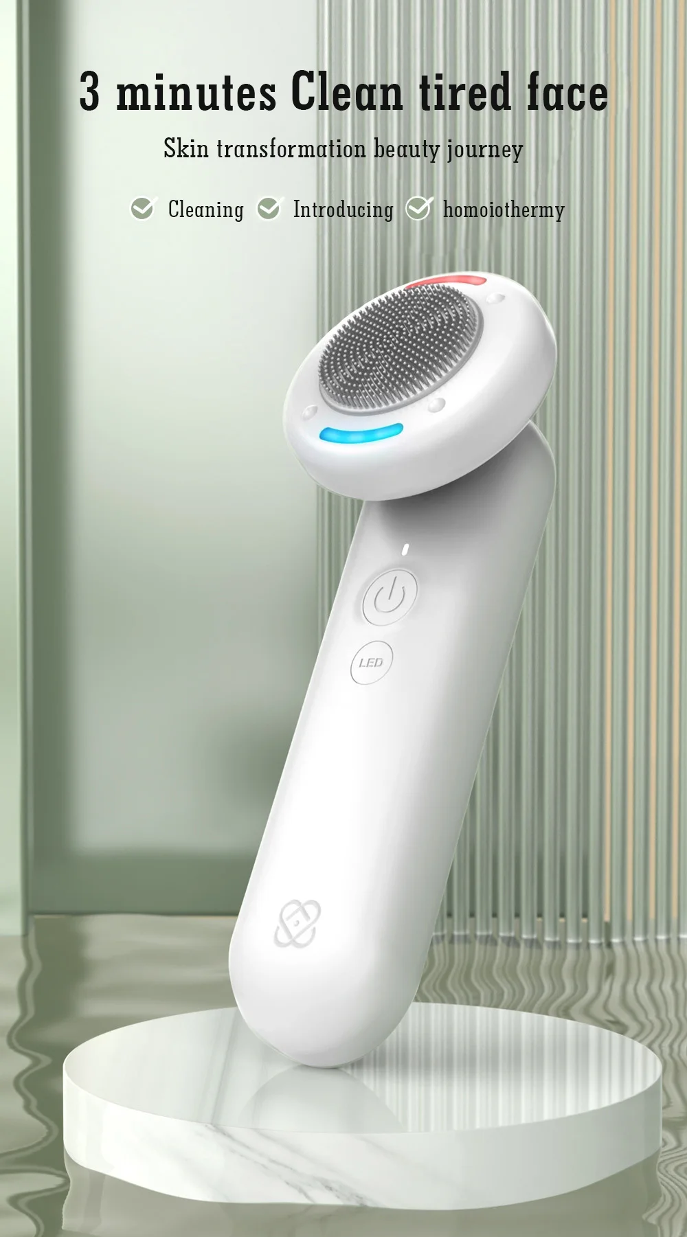 Free Logo Design Skincare Electric Facial Cleaning Brush Portable Soft Silicone Heating Facial Cleansing Brush