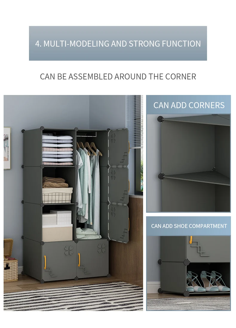 Hot Selling Modern Bedroom 12-Cube Plastic Wardrobe Wholesale Foldable Design for Clothes for Workshop Use