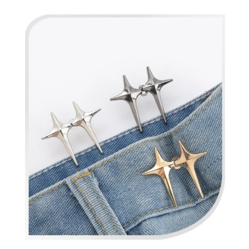 Trendy Cross Star Waist Buckle Adjustable Detachable Pants Clips Waist Tightener Nail-free Metal Button Snaps For Jeans Decor